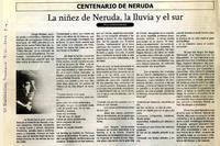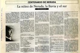 La Niñez de Neruda, la lluvia y el sur [artículo] / Hugo Montes. El Rancagüino (Rancagua, Chile)-- jul. 9, 2004, p. 4. retr. .
