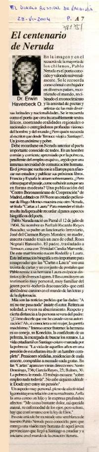 El centenario de Neruda [artículo] Erwin Haverbeck O.