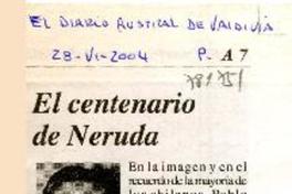 El centenario de Neruda [artículo] / Erwin Haverbeck O. El Austral (Valdivia, Chile)-- jun. 28, 2004, p. A7. retr. .