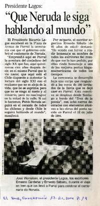 "Que Neruda le siga hablando al mundo" [artículo] El Sur (Diario : Concepción, Chile)-- jul. 13, 2004, p. 19. retr. .