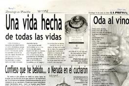 Una vida hecha de todas las vidas [artículo] La Prensa (Curicó, Chile)-- jul. 18, 2004, p. 3 (suplemento "Domingo en Familia") il. .