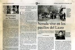 Neruda vive en los pasillos del Liceo [artículo] / Carolina Torres M. El Diario Austral (La Araucanía, Chile)-- jul. 12, 2004, p. A9. .