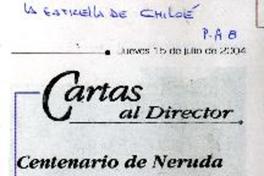 Centenario de Neruda [artículo] / Luisa Velásquez. La Estrella (Chiloé, Chile)-- jul. 15, 2004, p. A8. .