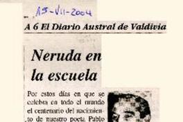 Neruda en la escuela [artículo] / Augusto Sanhueza Vergara. El Diario Austral (Valdivia, Chile)-- jul. 15, 2004, p. A6. retr. .