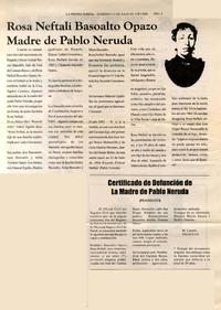Rosa Neftalí Basoalto Opazo madre de Pablo Neruda. [artículo] La Prensa (Parral, Chile)-- jul. 11, 2004, p. 2. .