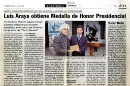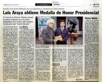 Luis Araya obtiene Medalla de Honor Presidencial [artículo] Daniel Meza.