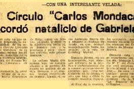 El Círculo "Carlos Mondaca" recordó natalicio de Gabriela [artículo]