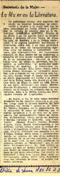 La Mujer en la literatura [artículo] El Día (Diario : La Serena, Chile)-- dic. 17, 1975, p. 3. .