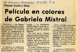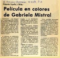 Película en colores de Gabriela Mistral Filmarán España y Chile [artículo] :