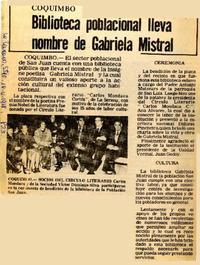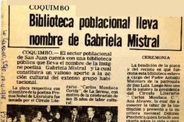 Biblioteca poblacional lleva nombre de Gabriela Mistral [artículo]