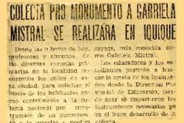 Colecta pro monumento a Gabriela Mistral se realizará en Iquique. [artículo]