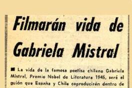 Filmarán vida de Gabriela Mistral [artículo]