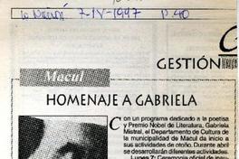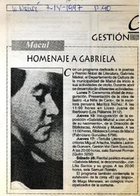 Homenaje a Gabriela [artículo] La Nación (Diario : Santiago, Chile)-- abr. 7, 1947, p. 40. .