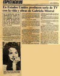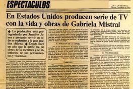 En Estados Unidos producen serie de TV con la vida y obras de Gabriela Mistral [artículo] La Segunda (Santiago, Chile)-- mayo 7, 1983. retr. .
