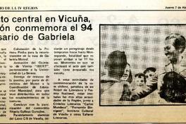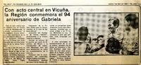 Con acto central en Vicuña, la Región conmemora el 94 aniversario de Gabriela [artículo] El Día (Diario : La Serena, Chile)-- abr. 7, 1983, p. 5. retr. .