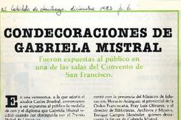 Condecoraciones de Gabriela Mistral [artículo] El Cabildo (Santiago, Chile)-- dic. 1983, p. 6. .
