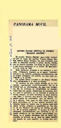 Jacobo Danke obtuvo el premio "Blasco Ibañez". [artículo] Millantún (Revista : Santiago, Chile)-- no. 12 (agosto, 1943), p. 47. .