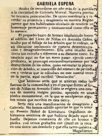 Gabriela espera [artículo] La Prensa Austral (Punta Arenas, Chile)-- ene. 20, 1982, p. 21. .
