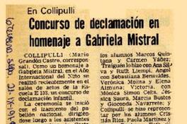 Concurso de declamación en homenaje a Gabriela Mistral [artículo]