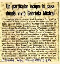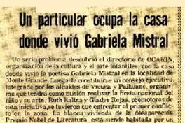 Un particular ocupa la casa donde vivió Gabriela Mistral [artículo]