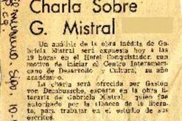 Charla sobre G. Mistral [artículo] El Mercurio (Santiago, Chile)-- abr. 10, 1979, p. C9. .