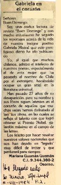 Gabriela en el corazón [artículo] Mariana Guzmán Guzmán.
