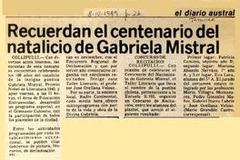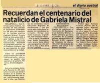 Recuerdan el centenario del natalicio de Gabriela Mistral [artículo] El Austral (Temuco, Chile)-- abr. 8, 1989, p. 26. .