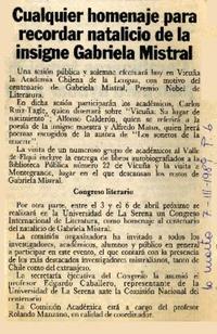 Cualquier homenaje para recordar natalicio de la insigne Gabriela Mistral [artículo].