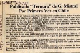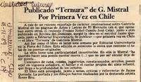 Publicado "Ternura" de G. Mistral por primera vez en Chile [artículo] El Mercurio (Santiago, Chile)-- nov. 18, 1989, p. C19. .