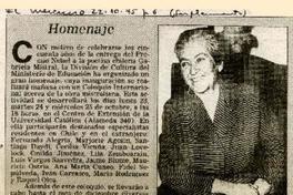 Homenaje [artículo] El Mercurio (Santiago, Chile)-- oct. 22, 1995, p. 6 (suplemento) retr. .