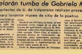 Remodelarán tumba de Gabriela Mistral [artículo] El Mercurio (Valparaíso, Chile)-- oct. 7, 1982, p. 3. .