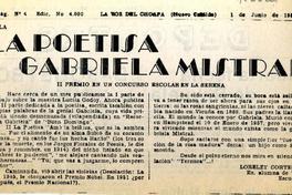 La poetisa Gabriela Mistral II Premio en un concurso escolar en la Serena / [artículo] : Loreley Cortés León. La Voz (Choapa, Chile)-- jun. 1, 1984, p. 4. .