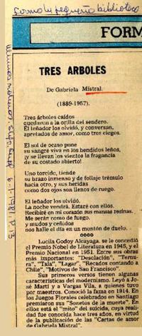 Tres árboles [artículo] Las Últimas Noticias (Diario : Santiago, Chile)-- ene. 6, 1981, p. 13 (suplemento) .