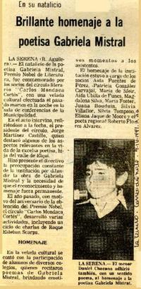 Brillante homenaje a la poetisa Gabriela Mistral [artículo]