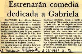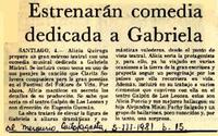 Estrenarán comedia dedicada a Gabriela [artículo] El Mercurio (Antofagasta, Chile)-- mar. 5, 1981, p. 15. .