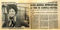 Alicia Quiroga representara la vida de Gabriela Mistral [artículo] La Segunda (Santiago, Chile)-- mar. 3, 1981, p. 25. retr. .