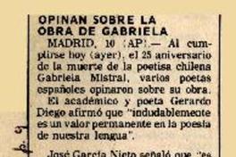 Opinan sobre la obra de Gabriela [artículo]