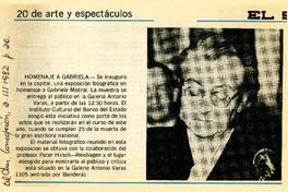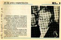 Homenaje a Gabriela [artículo] El Sur (Diario : Concepción, Chile)-- mar. 3, 1982, p. 20. retr. .