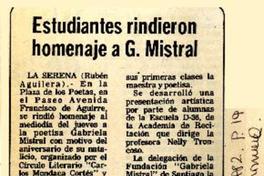 Estudiantes rindieron homenaje a G. Mistral [artículo]