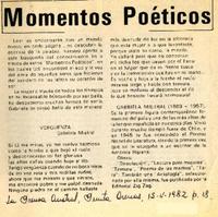 Momentos poéticos [artículo] La Prensa Austral (Punta Arenas, Chile)-- mayo 15, 1982, p. 18. .