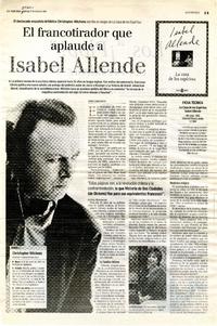 El francotirador que aplaude a Isabel Allende [artículo] / Andrés Gomez Bravo. La Tercera (Diario : Santiago, Chile)-- mar. 27, 2005, p. 25. .