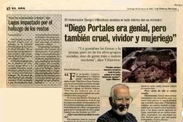 El historiador Sergio Villalobos analiza el lado íntimo del ex ministro : "Diego Portales era genial, pero también cruel, vividor y mujeriego" [artículo] Sergio Rodríguez.