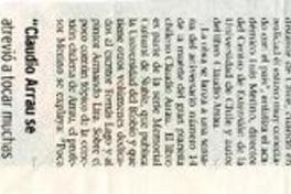 Del profesor Luis Merino : editan libro sobre Arrau en su aniversario [artículo]