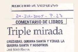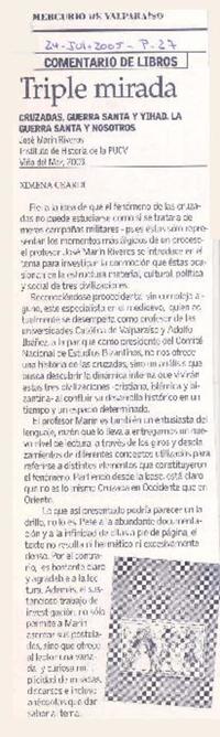 Comentario de libros : Triple mirada : Cruzadas, guerra Santa y Yihad, la Guerra Santa y nosotros / Jose Marin Riveros [artículo] El Mercurio (Diario: Valparaíso, Chile) jul. 25, 2005, p. 27 .