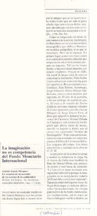 La imaginación no es competencia del Fondo Monetario Internacional [artículo] / Luis H. Aristizábal Boletín Cultural y Bibliográfico (Bogotá, Colombia)-- no. 67 (2004) p. 82-85 .