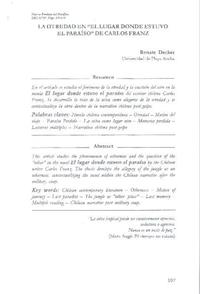 La otredad en "El lugar donde estuvo el paraíso" de Carlos Franz [artículo] / Renate Decker. Nueva Revista del Pacífico (Revista : Chile)-- no. 50 (2005) p. 107-121 .