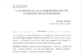 La otredad en "El lugar donde estuvo el paraíso" de Carlos Franz [artículo] Renate Decker.