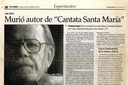 Murió autor de "Cantata Santa María" [artículo] El Mercurio (Valparaíso, Chile)-- sept. 10, 2004, p. 38 .