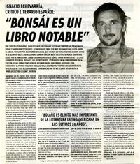 Bonsái es un libro notable (entrevista) [artículo]. The Clinic (Revista : Santiago, Chile)-- no. 176 (mayo 4, 2006) p. 34. .