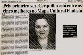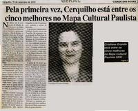 Pela primeira vez, Cerquilho está entre os cinco melhores no Mapa Cultural Paulista [artículo] Cidade das rosas (Diario : Brasil)-- nov. 18, 2000, p. 3 .
